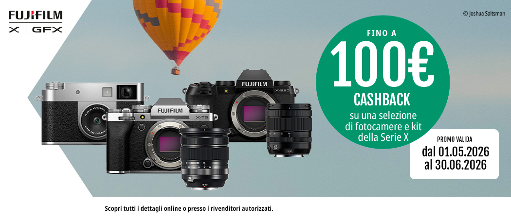 - La promozione è riservata a utenti finali maggiorenni, residenti in Unione Europea (oppure in UK), che acquistano un prodotto in promozione da un rivenditore autorizzato, online oppure in un punto vendita in Italia e che registrano una richiesta di rimborso alla pagina web https://fujifilm-x-summer2026.sales-promotions.com/it/?country_promotion=16 .